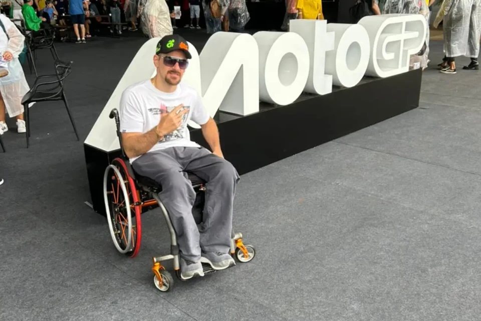 Apaixonado por motos desde a infância, Thiago Augusto, de 40 anos, percorreu cerca de 860 quilômetros para acompanhar de perto o MotoGP, em Goiânia. Cadeirante, ele saiu com amigos de Campo Grande (MS) conduzindo uma motocicleta adaptada chegou à capital na quinta-feira (18). No Autódromo de Goiânia Ayrton Senna, ele revelou a admiração e torcida pelo piloto espanhol Marc Márquez, heptacampeão e ídolo da categoria principal do motovelocidade.